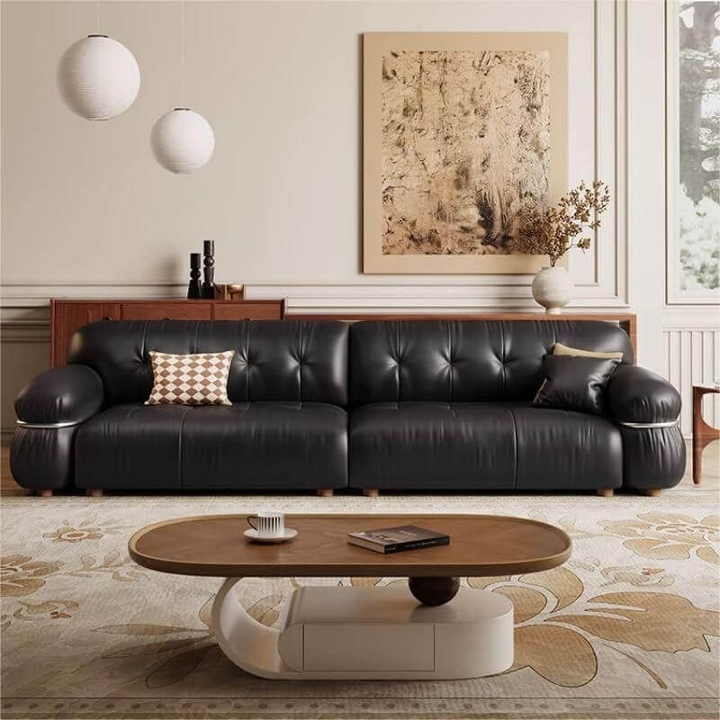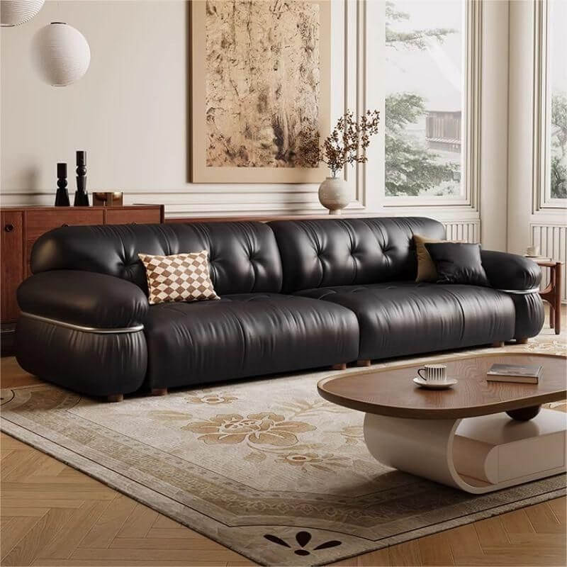 Presentamos el sofá de piso Midnight Black resistente a desgarros para sala de estar, donde la comodidad se combina con el diseño moderno.