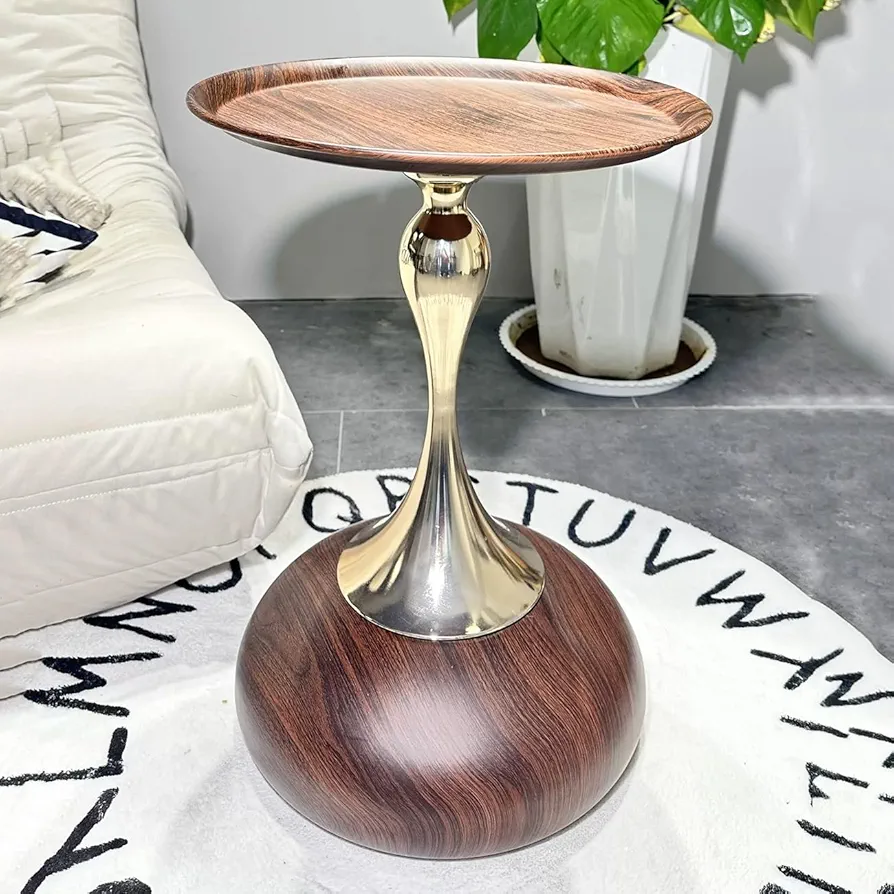 Mesa auxiliar redonda para sala de estar, mesa auxiliar moderna para espacios pequeños, elegante mesa de cóctel y bebida para oficina en casa y dormitorio (marrón)