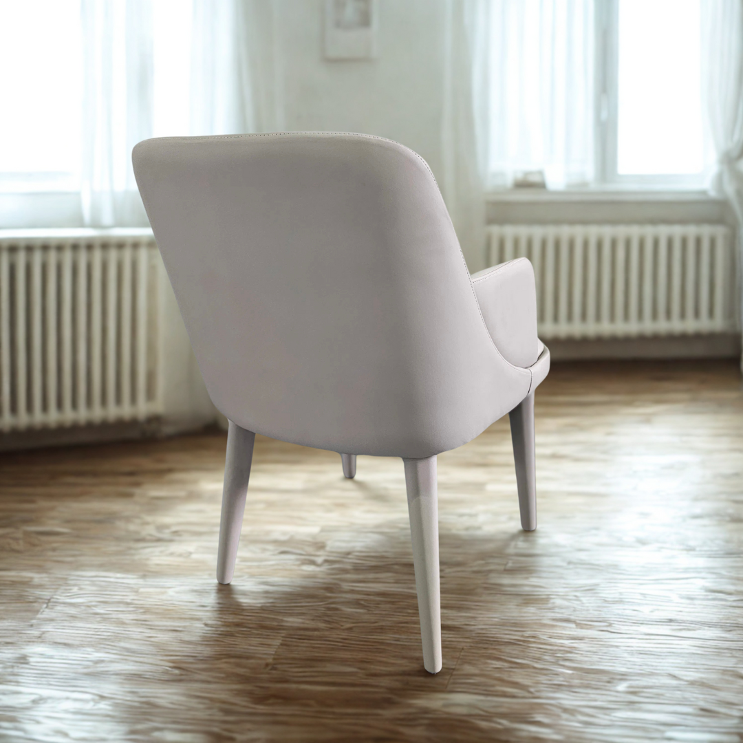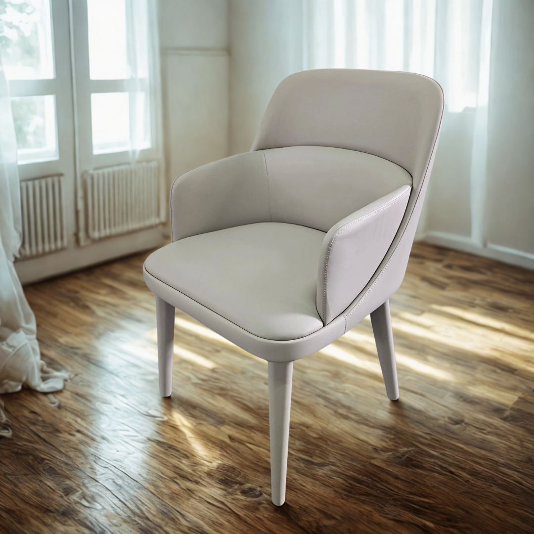 La Silla Siena redefine la elegancia contemporánea con un diseño envolvente, limpio y cómodo. Tapizada en ecopiel de alta calidad en un tono neutro, su estética minimalista se adapta fácilmente a interiores modernos, nórdicos o clásicos. Sus formas curvas y respaldo envolvente brindan una experiencia de confort superior, ideal para largas sobremesas o reuniones relajadas.
