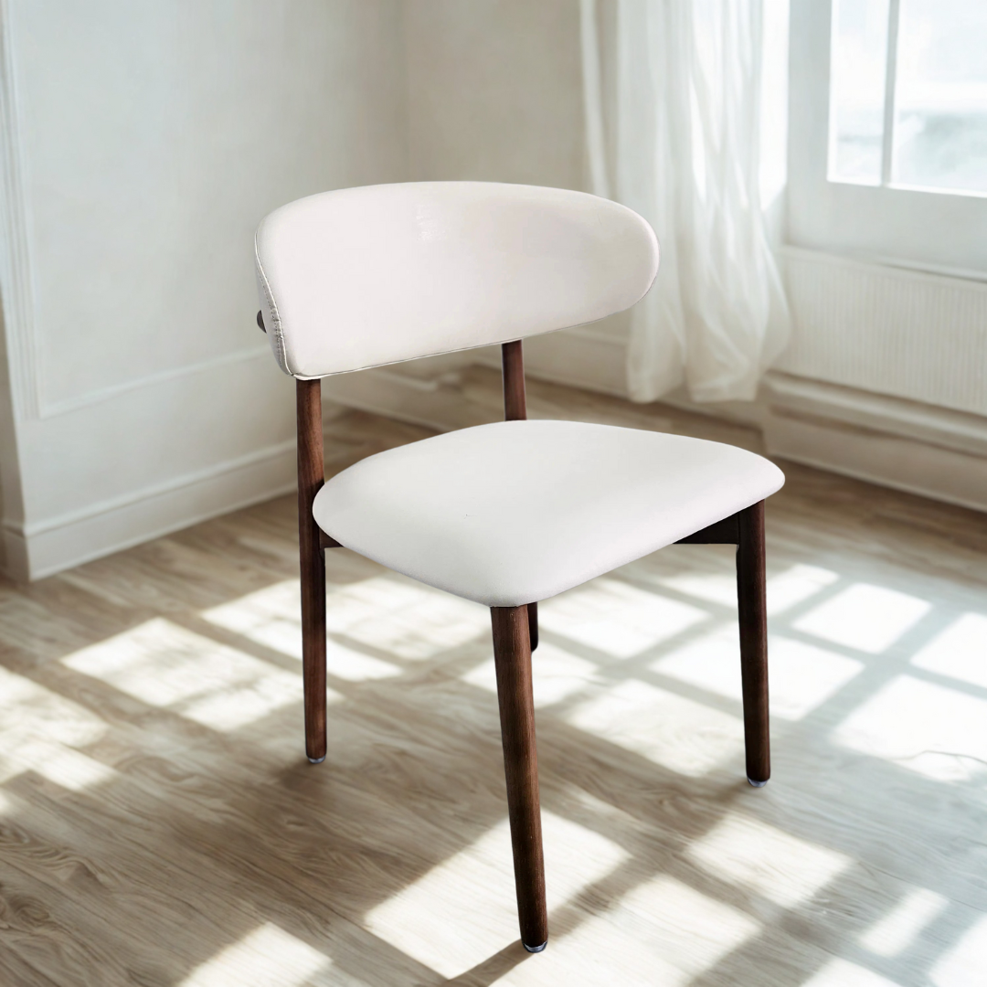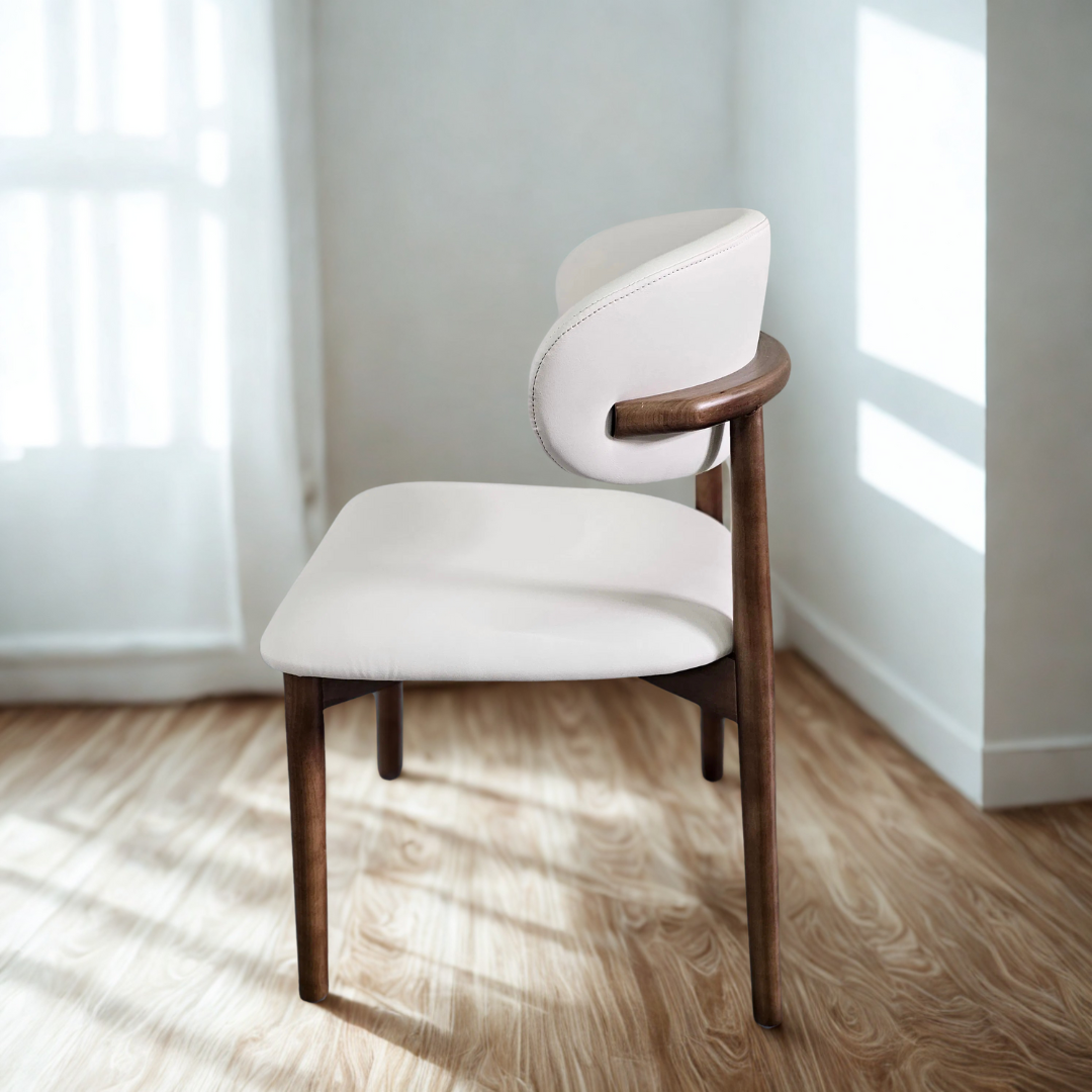 Diseño limpio, natural y sofisticado. La Silla Nara destaca por su estructura de madera curvada que abraza el respaldo y los apoyabrazos en una sola línea fluida, transmitiendo calidez y estilo escandinavo. El asiento y respaldo tapizados en tono blanco aportan frescura y elegancia, generando un contraste sutil con la madera natural.