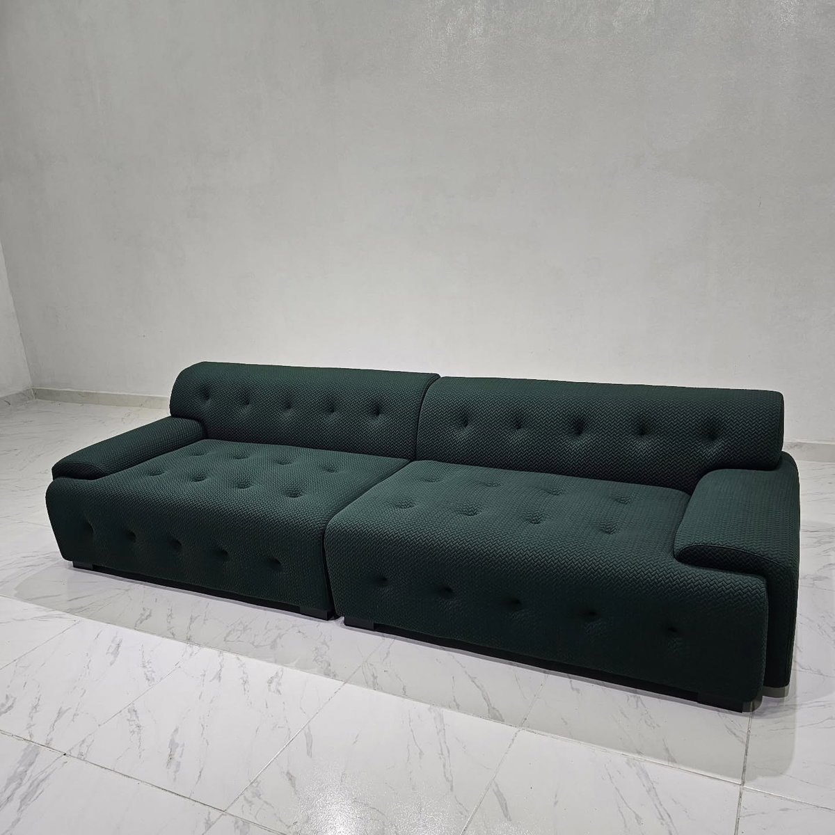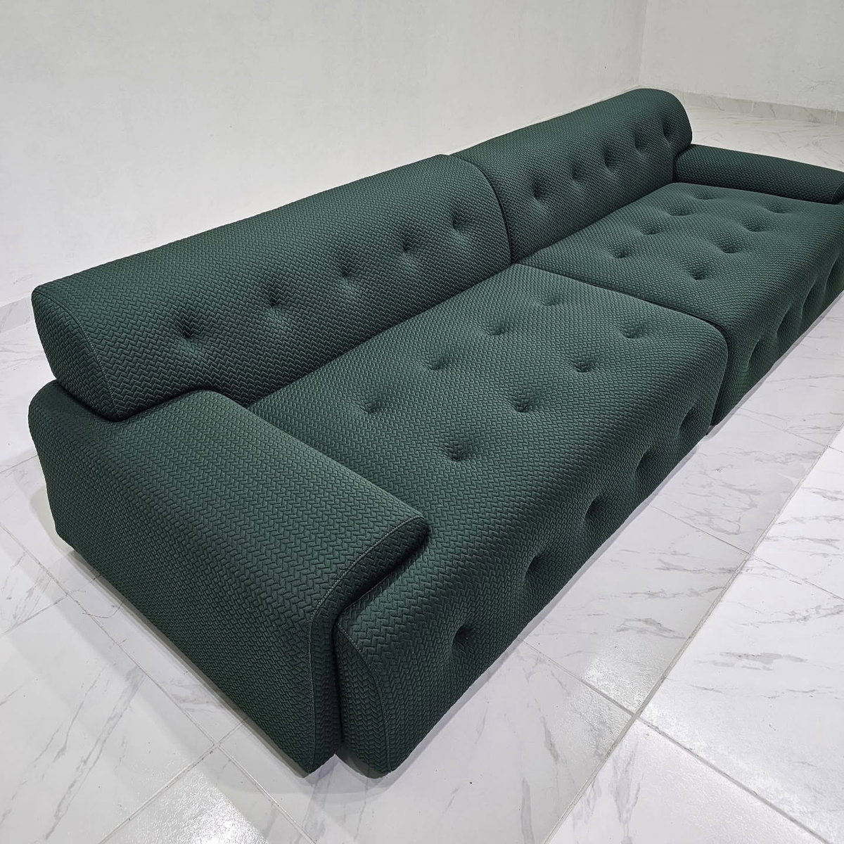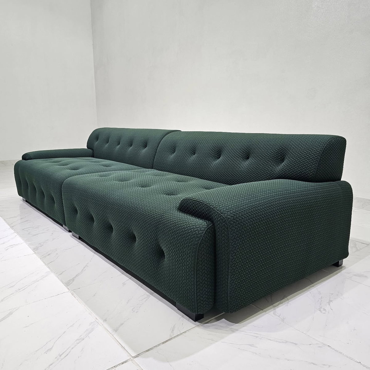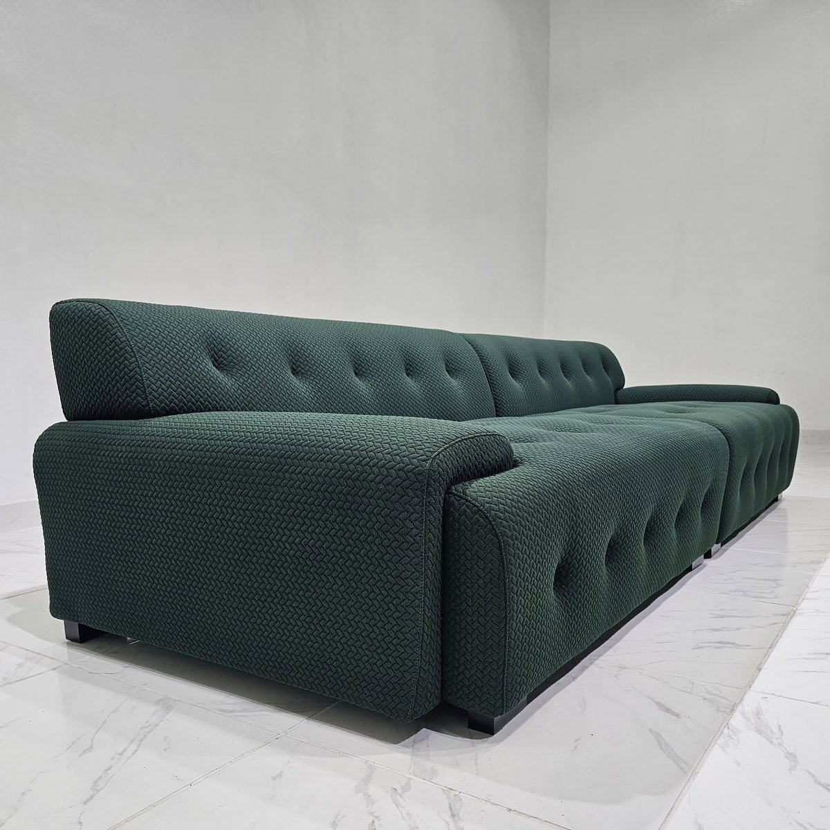 Sofá de diseño minimalista con una silueta redondeada y tejido elástico 3D, transpirable y cómodo. Cuenta con asiento de espuma de alta densidad 45D, ofreciendo un fuerte apoyo y mayor comodidad con el tiempo.