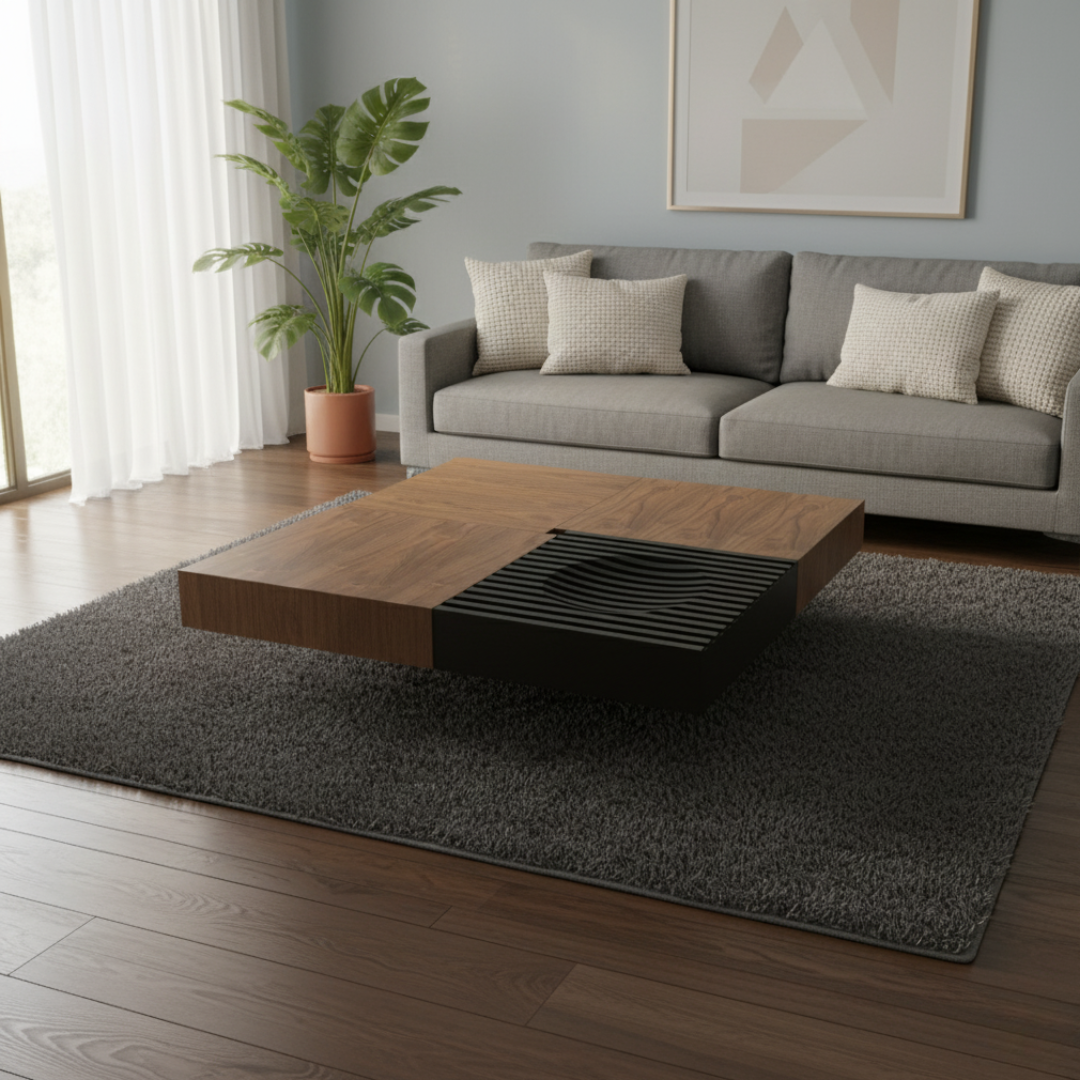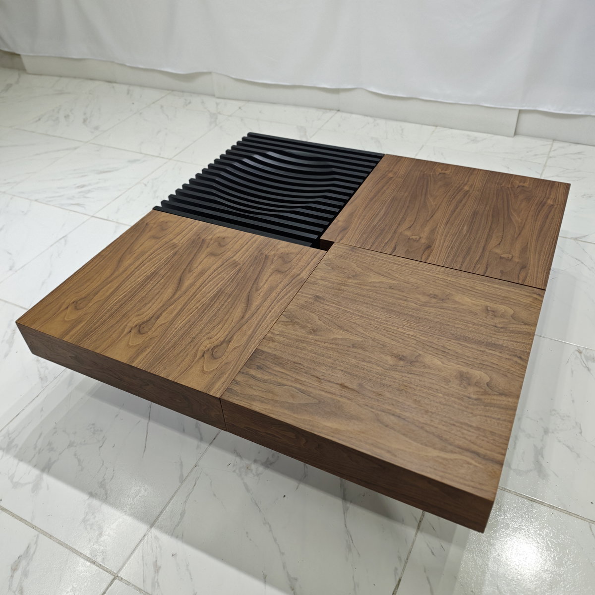 Tablero de fibra ecológica E1 con chapa de nogal + tiras de madera maciza