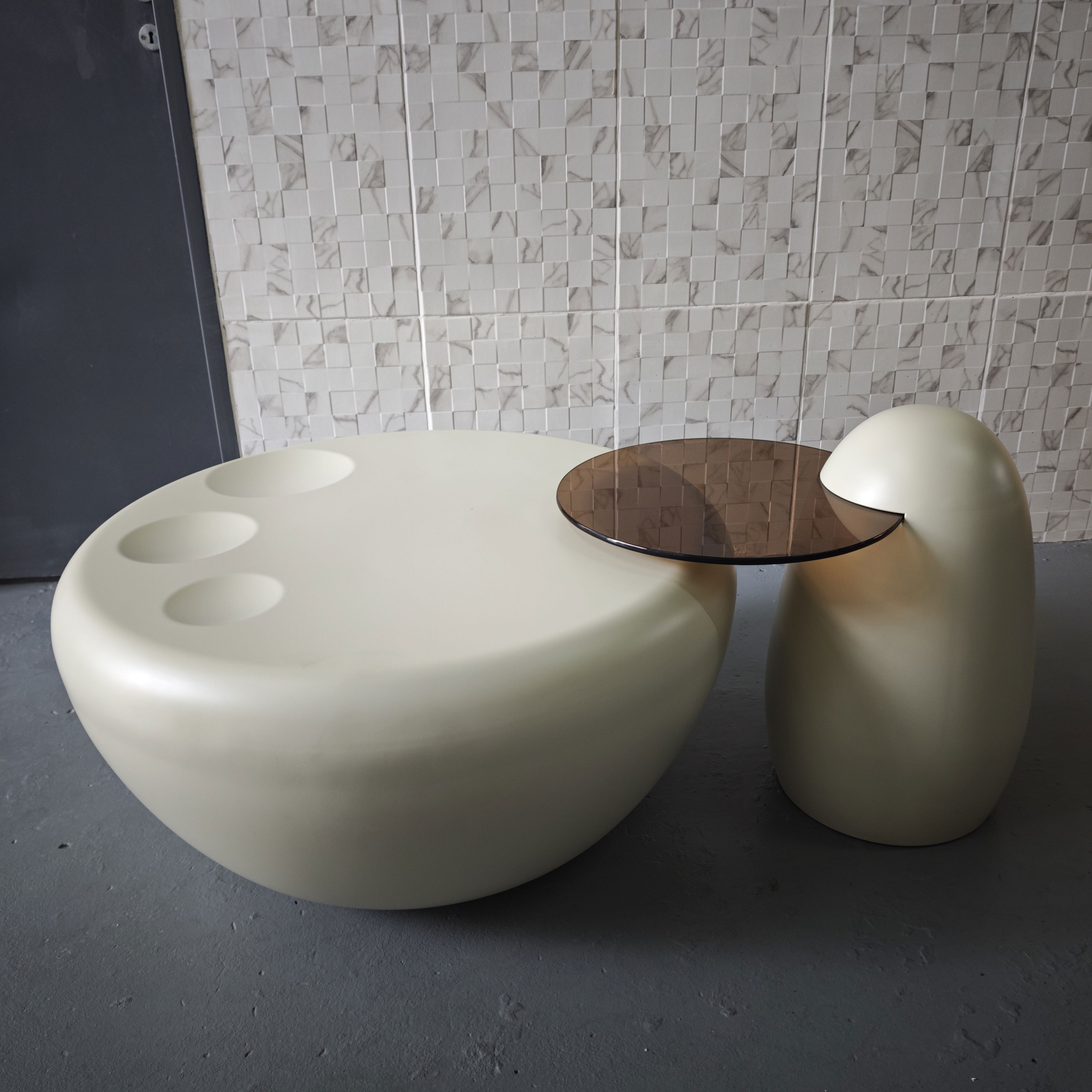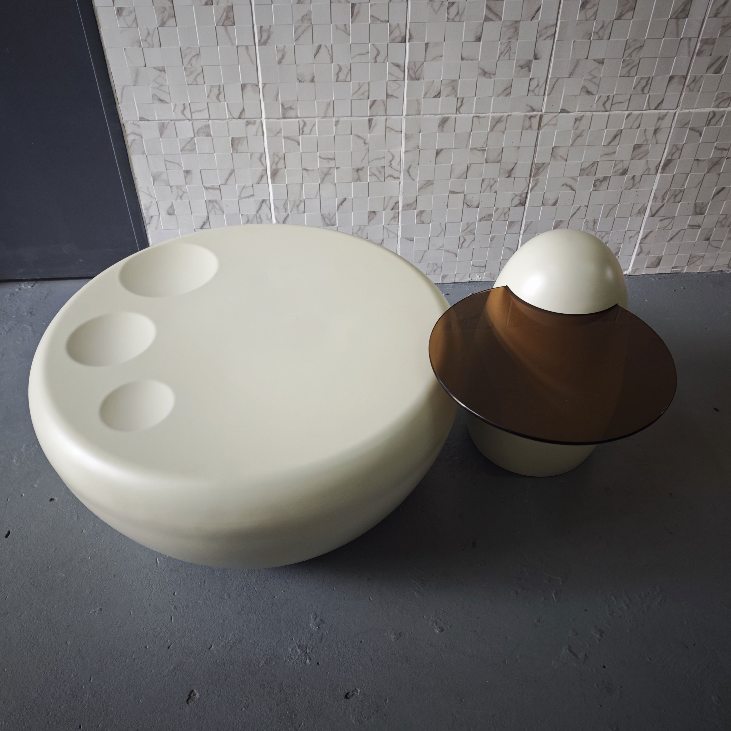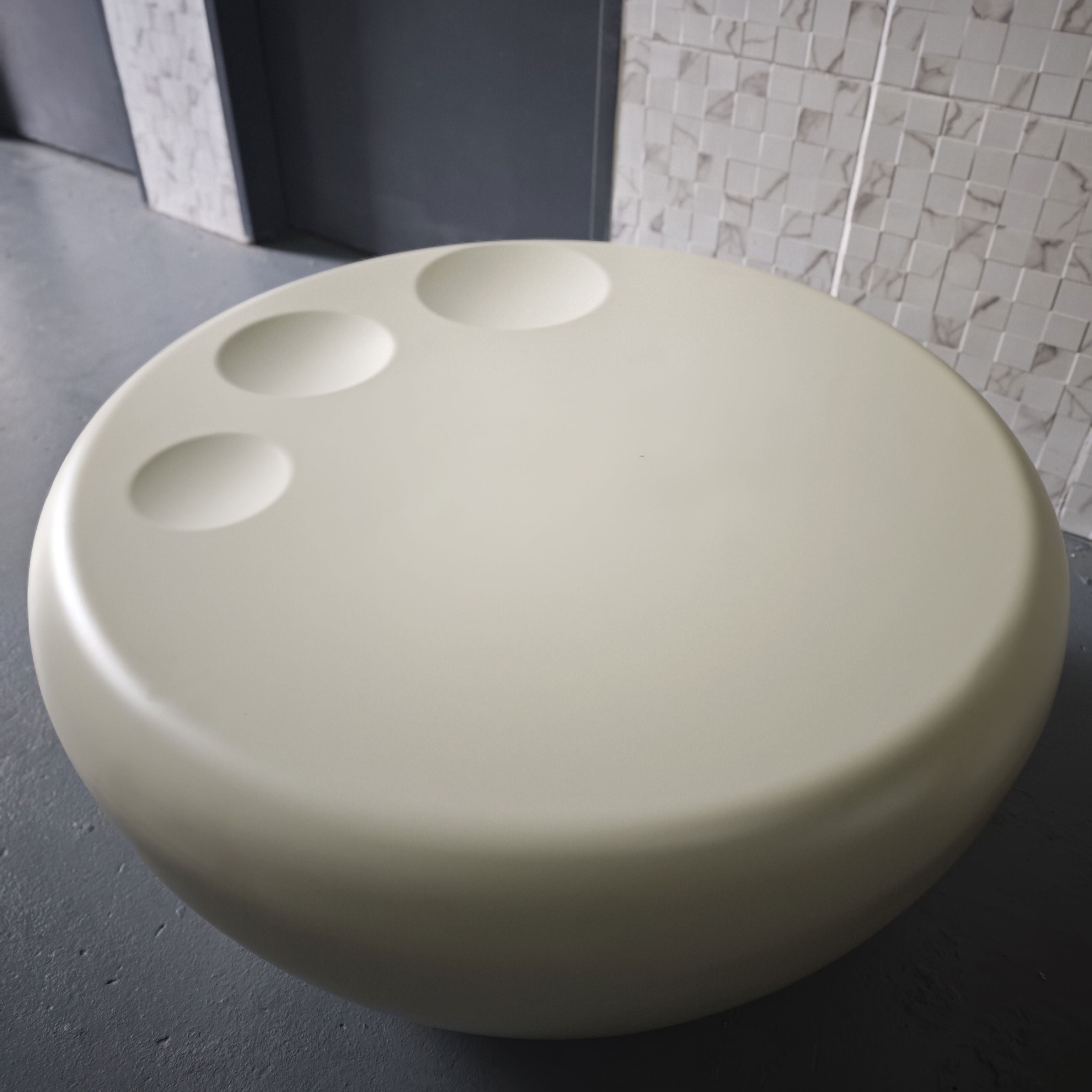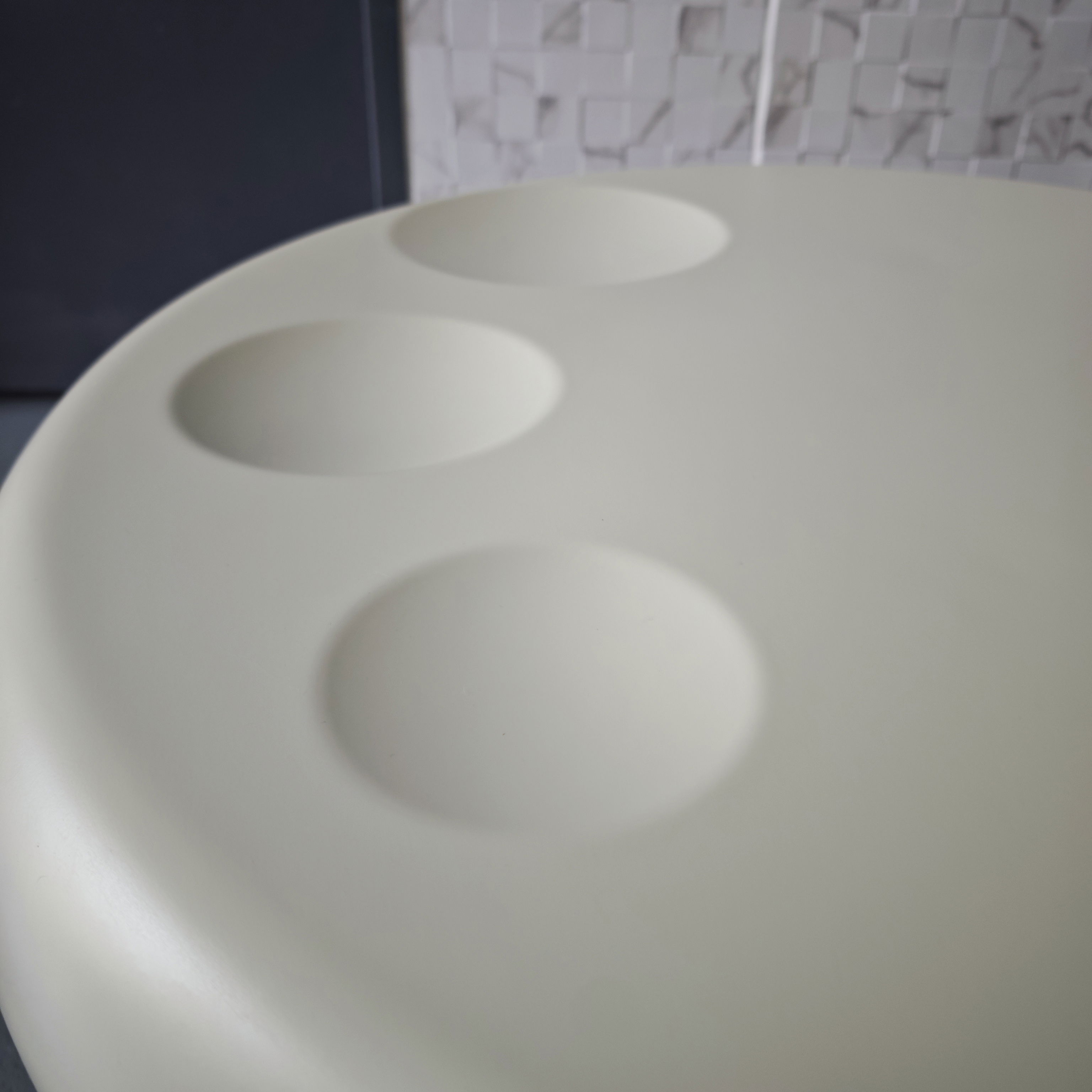 La mesa presenta una pequeña imperfección superficial en la parte superior, un leve desprendimiento del acabado que no afecta su estructura ni funcionalidad.