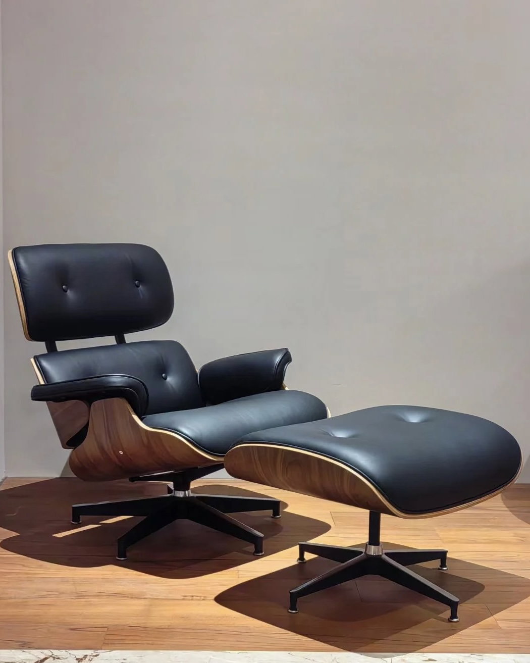 Silla individual de respaldo alto, hecha de cuero de vaca de grano superior y madera natural, ofreciendo una calidad premium.