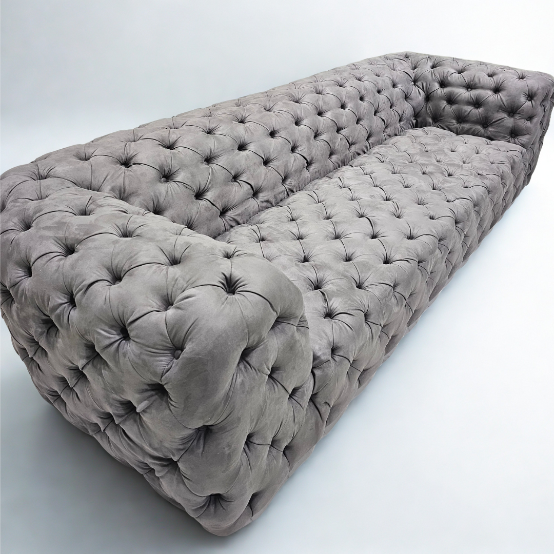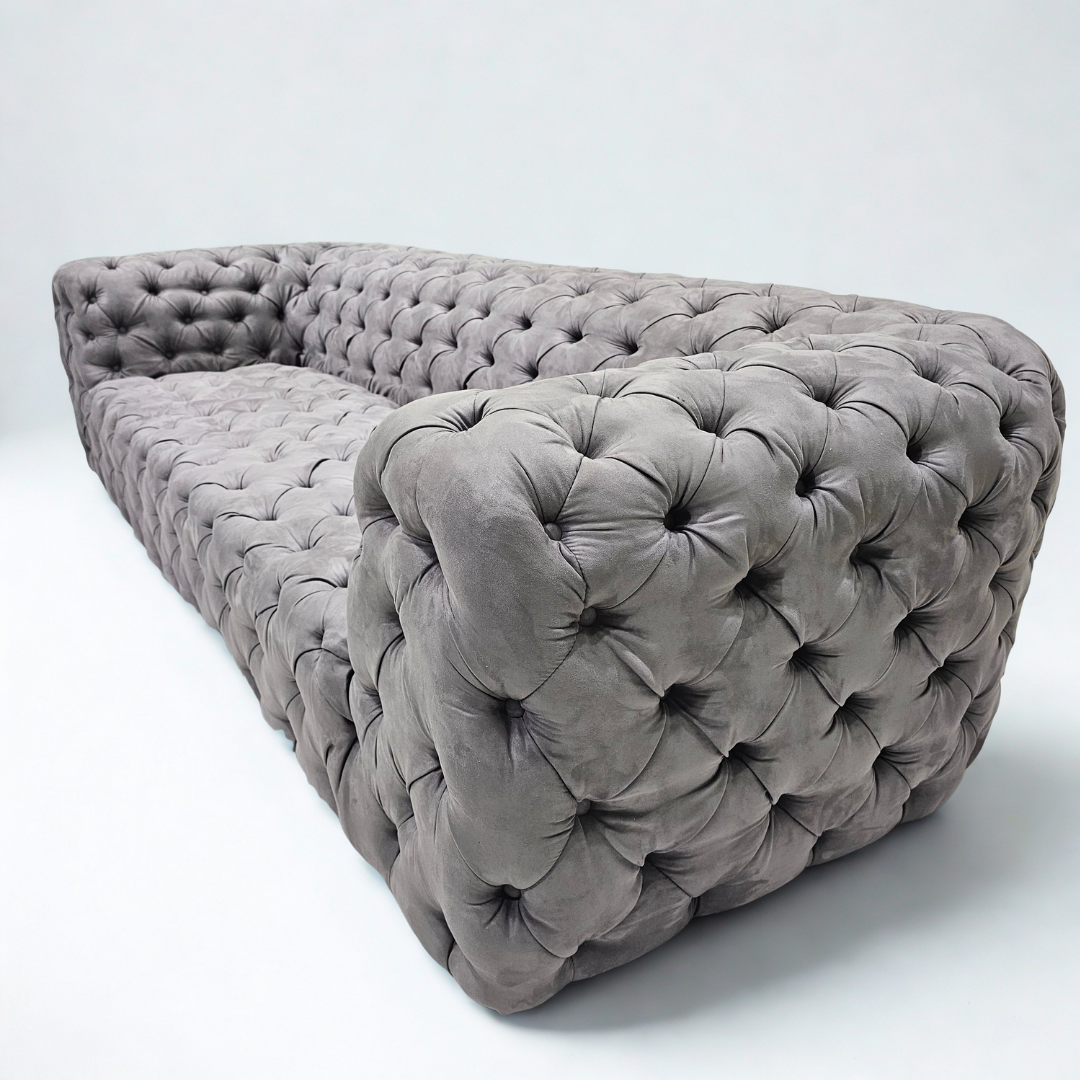 El sofá Chester Moon de Baxter es un raro ejemplo de un clásico diseño inglés de lengüeta que se asemeja a la superficie cóncava de la luna con esquinas redondeadas. La textura de diamante hace que el asiento sea más cómodo y transpirable, y el diseño tridimensional del respaldo añade una sensación envolvente, convirtiéndolo en un elemento clásico. Tejido de ante suave y de alta densidad.